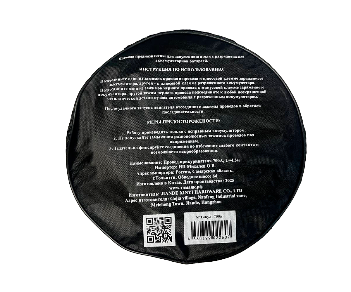 - Провода укомплектованы в удобную тетроновую сумку с ручкой.